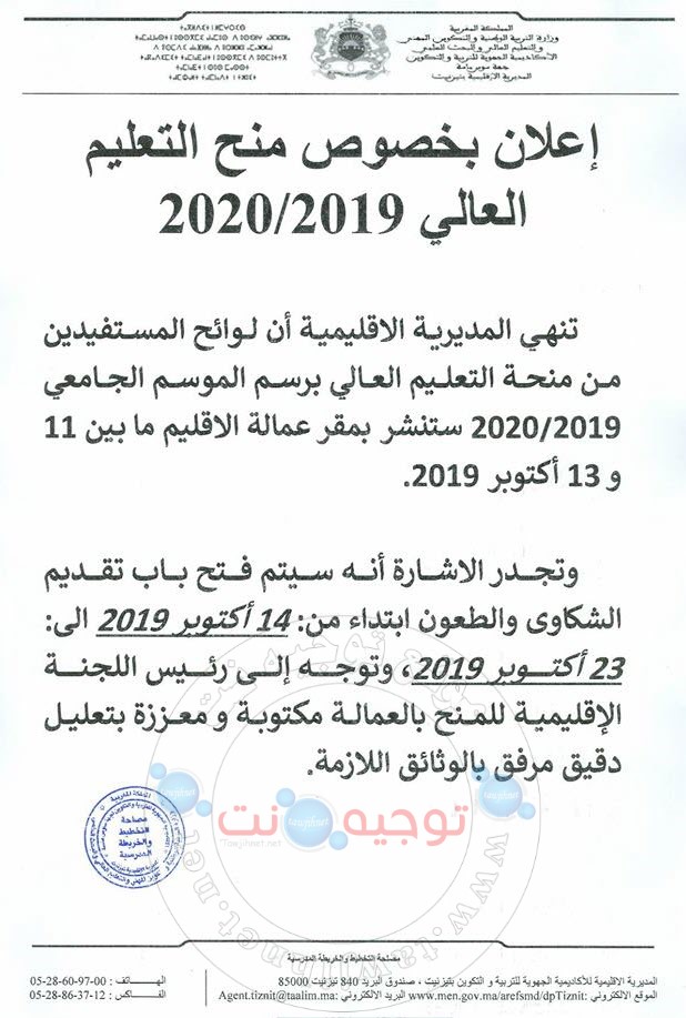 تيزنيت تيزبريس تنشر لوائح المستفيدين من منح التعليم العالي برسم السنة الجامعية 2018 2019 رفقته بيان للفرع الإقليمي لفيدرالية جمعيات الأمهات والآباء والأولياء بالإقليم Tizpress