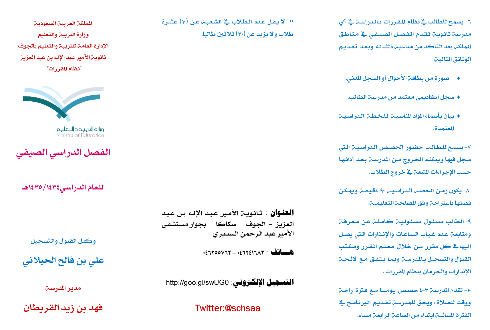 نظام المقررات الجوف On Twitter مطوية الفصل الصيفي 1435 Http T Co Yyjj3ycprc