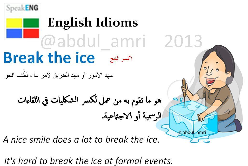 تحدث الإنجليزية On Twitter English Idioms عبارات تختلف عن الترجمة الحرفية Break The Ice المعنى يلطف الجو تحدث الإنجليزية تعلم الإنجليزية Http T Co E5y4im2j