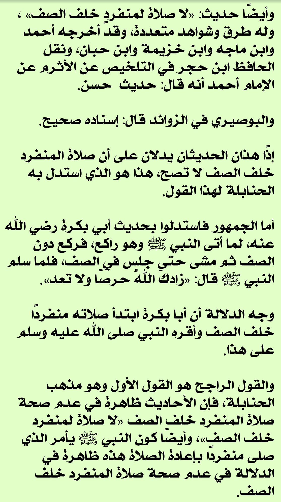 منبر علماء اليمن صلاة المنفرد خلف الصف